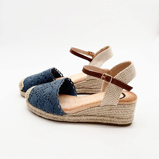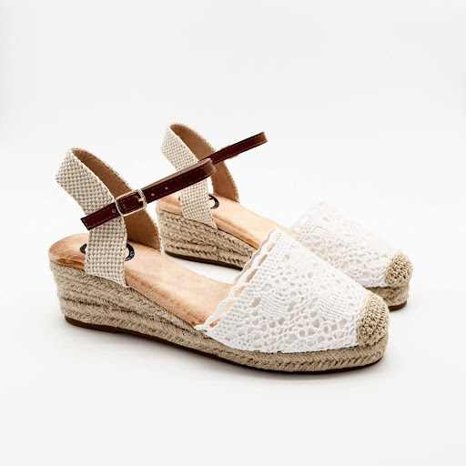 La Cuña Zenda es el calzado perfecto para mujer que busca un estilo fresco, femenino y cómodo para la temporada de primavera y verano. Su diseño combina la naturalidad del esparto con el encanto artesanal del tejido crochet, logrando una estética ligera y muy favorecedora que encaja tanto en looks casuales como en conjuntos más arreglados.