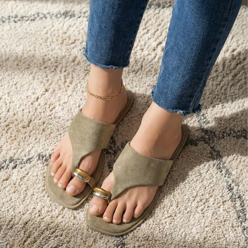 La Esclava Roma es una sandalia plana para mujer que destaca por su diseño moderno, cómodo y con un toque sofisticado. Su detalle de adorno metalizado en el dedo aporta personalidad y estilo, convirtiéndola en una opción ideal para elevar tus looks diarios durante la temporada de primavera y verano.