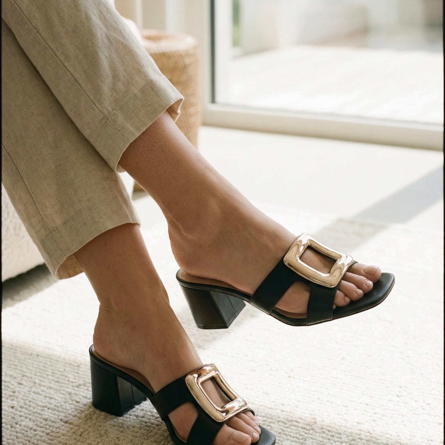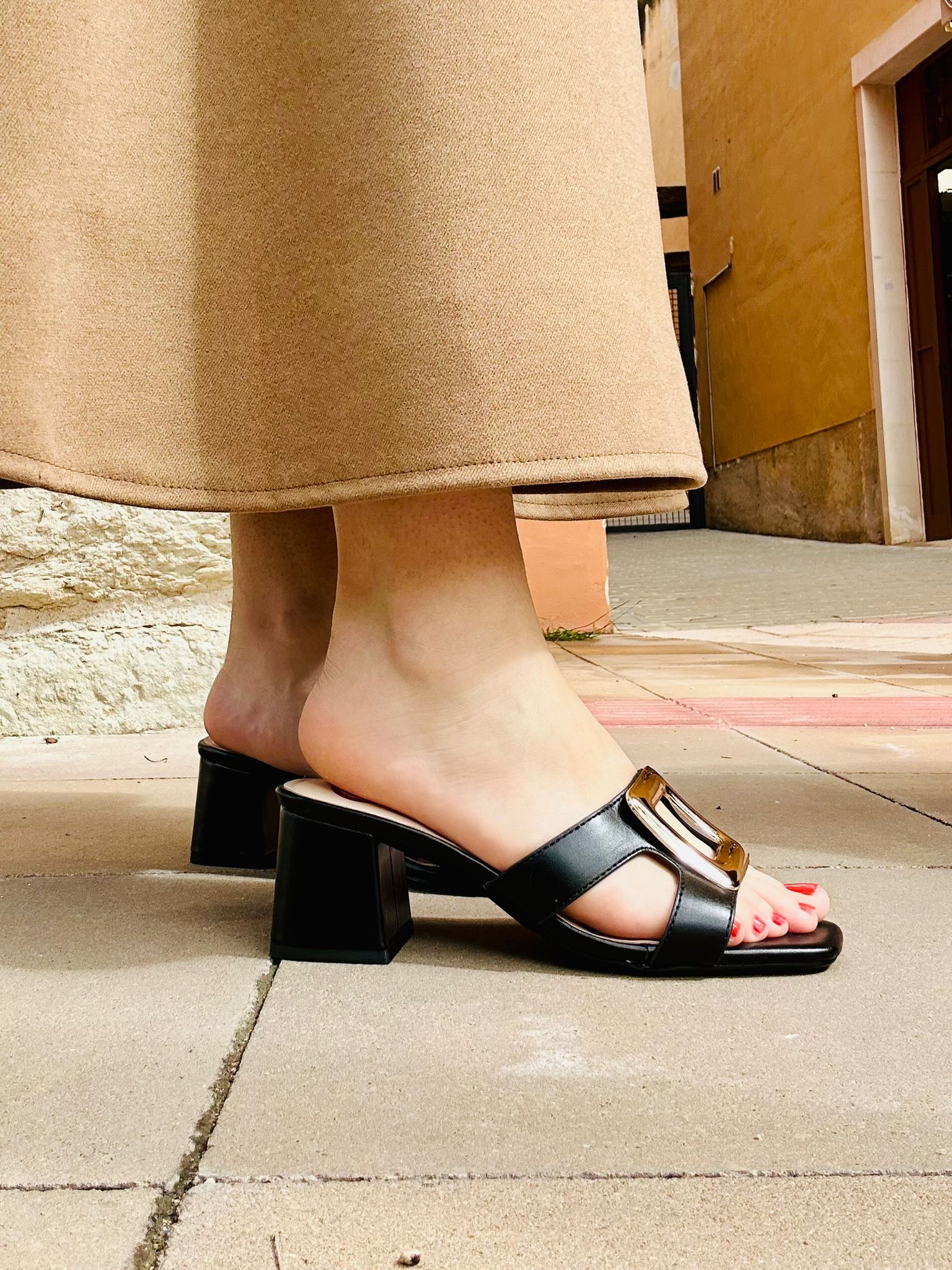 La Sandalia Aura es una opción elegante y versátil para mujer, diseñada para aportar estilo y comodidad en cualquier ocasión. Su tacón medio cuadrado ofrece una pisada estable y favorecedora, ideal tanto para el uso diario como para eventos informales o salidas especiales. El broche dorado añade un detalle sofisticado que realza el diseño y aporta un acabado moderno y femenino.