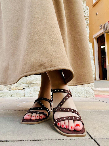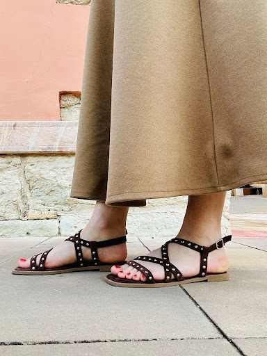 La Sandalia Maya es una opción cómoda y con personalidad para completar tus looks diarios con un estilo actual. Su diseño incorpora tiras cruzadas y tachuelas doradas, una combinación que aporta un acabado atractivo y con carácter. Está disponible en color marrón y negro, dos tonos versátiles y fáciles de combinar. Fabricada en antelina, incorpora planta acolchada antideslizante para ofrecer una pisada más cómoda y estable en el uso diario.