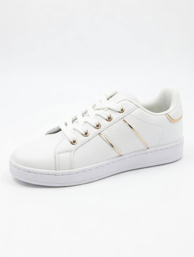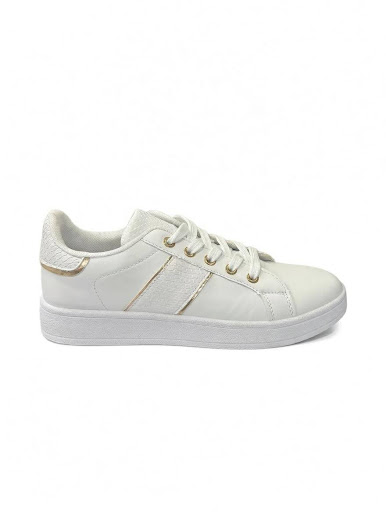 La zapatilla Eli es una deportiva casual pensada para quienes buscan un calzado versátil y actual para el día a día. Su diseño combina un estilo cómodo y funcional con un acabado moderno, disponible en las combinaciones de color blanco-dorado y blanco-plata. Está fabricada en material sintético y se presenta como una opción práctica para completar looks informales con un toque elegante.
